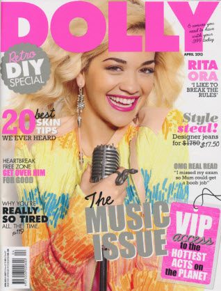 Forty eight pages into Dolly’s April issue and I was beginning to wonder if there was anything worth commenting on. Yes there was a promotion of the Dolly model search, but I’d already gone to town on that in the last review, 20 pages straight on fashion and ads, behind the scenes at X-factor, music predictions, then something I could talk about ‘My body tells a story: Three beautiful girls, three different stories about dealing with major body changes.’